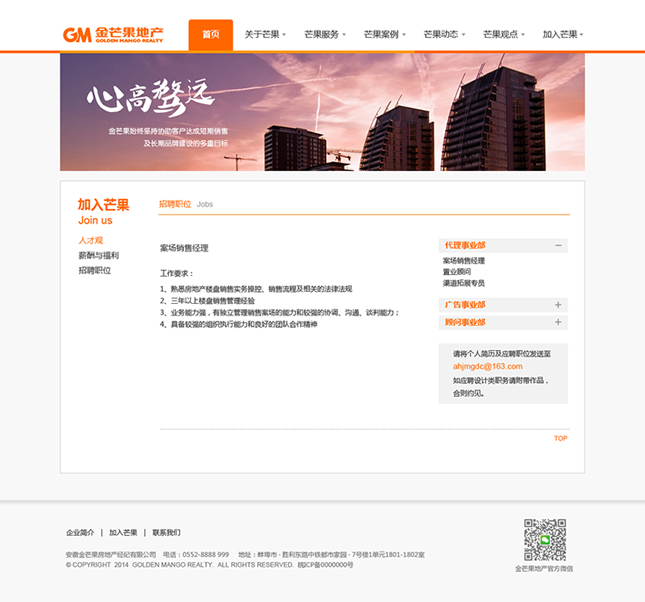 金芒果基于對中國房地產(chǎn)的執(zhí)著追求,憑借對市場營銷的激情創(chuàng)新,以完全經(jīng)過市場檢驗的專家團(tuán)隊和對市場的敏銳天賦,大膽構(gòu)思、執(zhí)著實踐、激情專注、科學(xué)分析,贏得了業(yè)主的廣泛認(rèn)同和支持,并以優(yōu)異業(yè)績和服務(wù)質(zhì)量,被客戶譽為具實效、富激情、科學(xué)嚴(yán)謹(jǐn)?shù)膶I(yè)房地產(chǎn)服務(wù)商。
