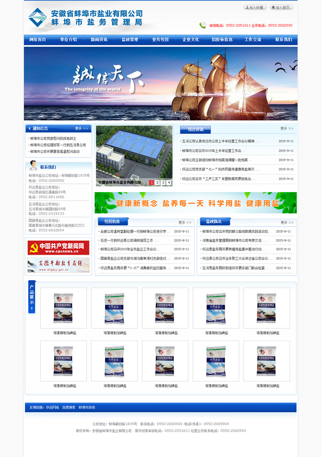 多年來,蚌埠鹽業(yè)認真貫徹落實國家《食鹽專營辦法》、《食鹽加碘消除碘缺乏危害管理條例》,始終以食鹽市場安全穩(wěn)定為天職,忠實履職,恪盡職守。一方面對全市鹽業(yè)市場進行鹽政監(jiān)管,嚴厲打擊鹽業(yè)違法犯罪,全力維護食鹽市場安全穩(wěn)定;另一方面負責組織開展食鹽專營,致力為消費者提供安全、優(yōu)質、放心的加碘食鹽,確保全市371萬人口的食鹽供應。與此同時,蚌埠鹽業(yè)主動適應市場需要,積極拓展非鹽經營,在發(fā)展的道路上不斷深化改革,自主創(chuàng)新,產業(yè)結構轉型邁出堅實步伐,全區(qū)總資產已近8000萬元,現(xiàn)有經營倉儲面積約1.5萬平米,在建倉庫1萬余平米。2014年實現(xiàn)銷售收入14762.69萬元,其中食鹽銷售4967.40萬元,非鹽銷售9795.20萬元、實現(xiàn)利稅1124.52萬元,經濟社會效益居全省同行領先。先后榮獲全省鹽業(yè)系統(tǒng)先進單位五連冠、安徽省勞動保障誠信示范企業(yè)、安徽省衛(wèi)生先進單位、檔案管理考核安徽省一級單位、蚌埠市A級納稅信用單位、蚌埠市第十四屆文明單位等多項榮譽稱號。